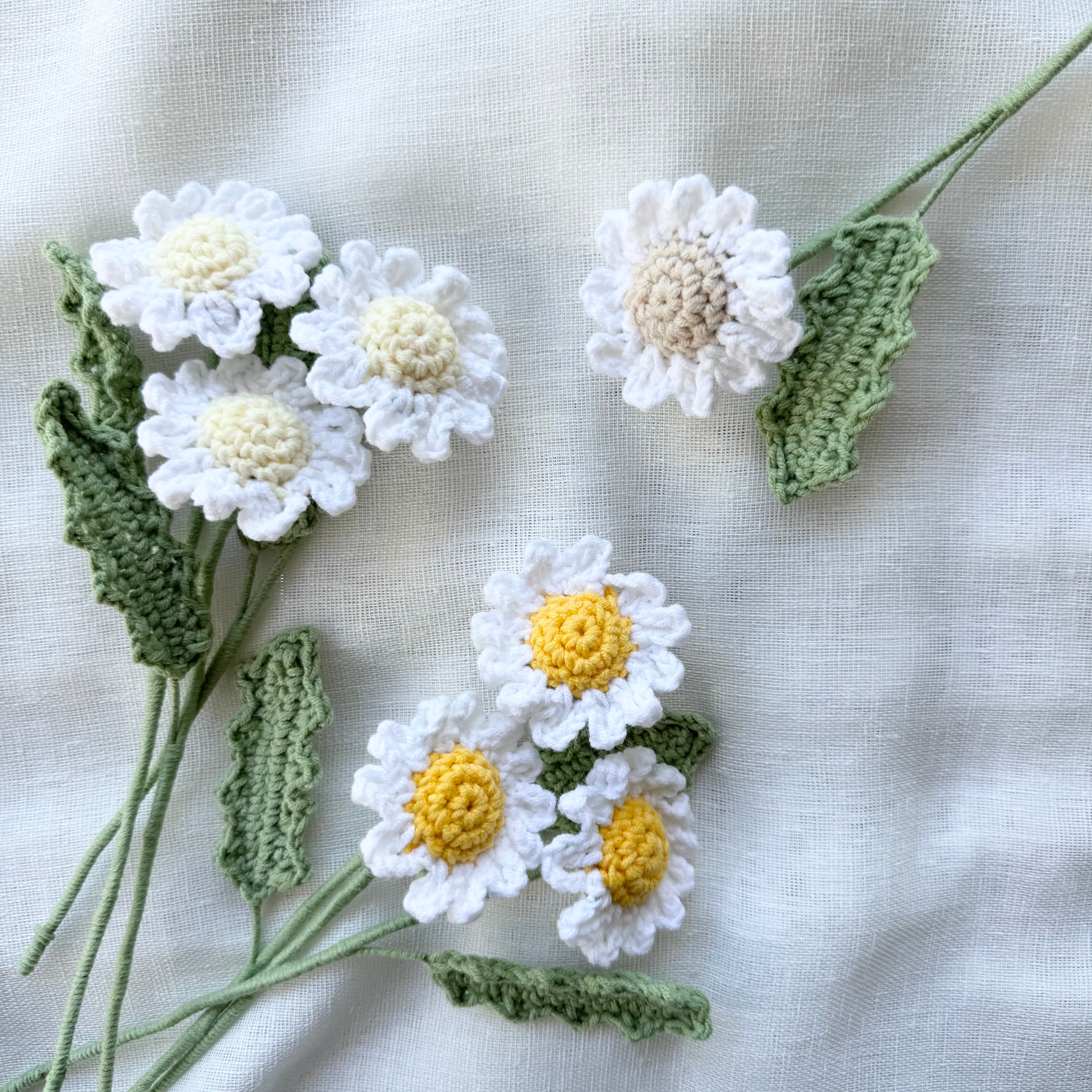 デイジーの茎にはホワイトのリボンを巻いてお届けします。