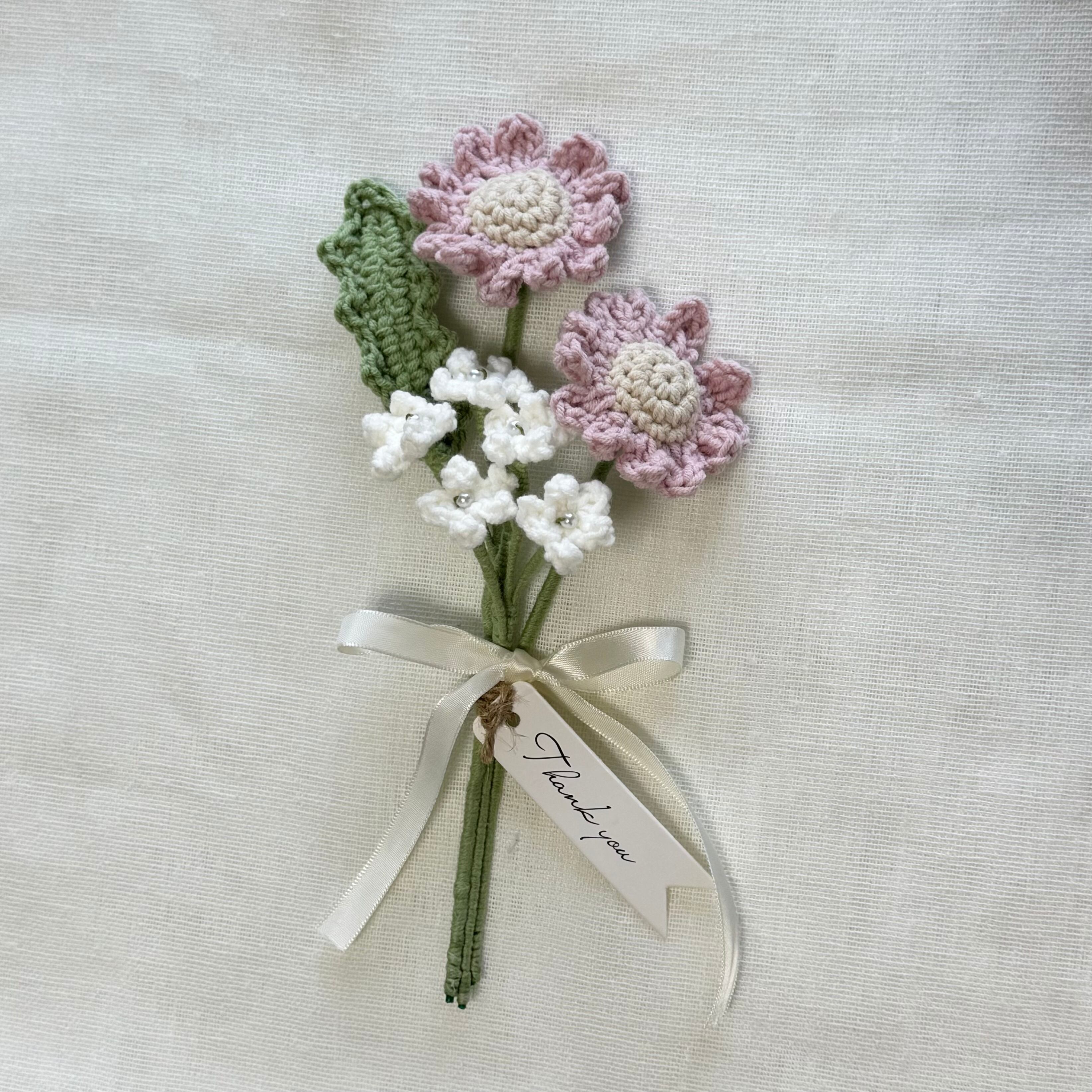 デイジーと小花のミニブーケ【くすみピンク】 | 毛糸のお花屋さん noel❁